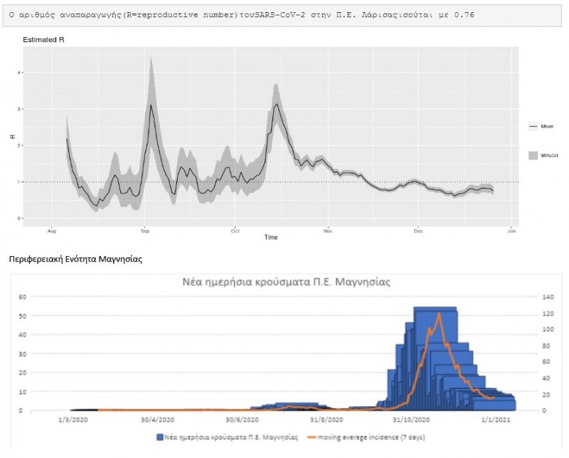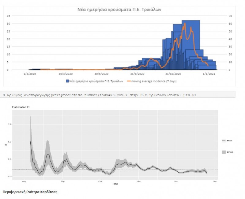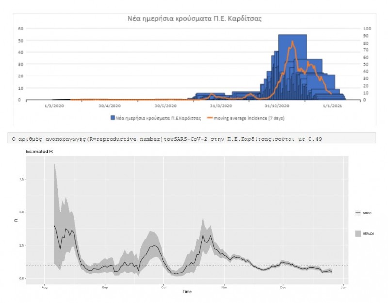 Για τις επιδημικές καμπύλες, τους χάρτες και τον αριθμός αναπαραγωγής R χρησιμοποιήθηκαν δεδομένα έως 31Δεκεμβρίου.
