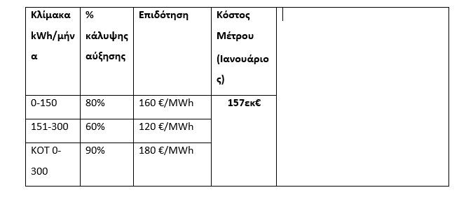 Έτσιμ η μέση μηνιαία ενίσχυση αντιστοιχεί σε 42 ευρώ για τις πρώτες 300KWh.
