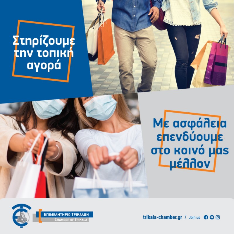 Με το σύνθημα “Στηρίζουμε την Τοπική Αγορά – Με ασφάλεια επενδύουμε στο κοινό μας μέλλον” το Επιμελητήριο Τρικάλων καλεί όλους να στηρίξουν τις επιχειρήσεις του Νομού Τρικάλων.