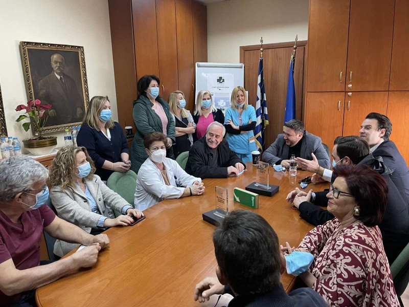 Στη συνέχεια επισκέφθηκαν το Γενικό Νοσοκομείο Λάρισας όπου τους υποδέχθηκε ο Διοικητής κ. Γρηγόρης Βλαχάκης. Ακολούθησε διευρυμένη σύσκεψη με ιατρικό- νοσηλευτικό προσωπικό και ενημέρωση για την λειτουργία πρότυπων μηχανημάτων του νοσοκομείου, ενώ συναντήθηκαν και με εκπροσώπους της ΔΑΚΕ και της ΔΕΕΠ .