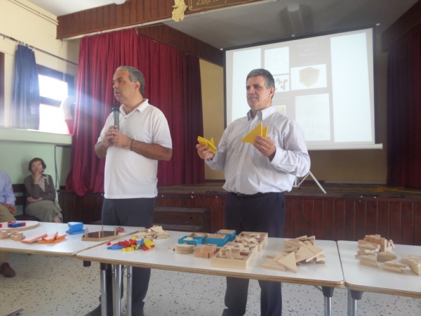Παρουσιάστηκε μία βιωματική διδασκαλία με τη συμμετοχή όλων σχεδόν των μαθητών, με 20 διαφορετικά τουλάχιστον μαθηματικά παιχνίδια που είχε μαζί του και κατασκεύασε ο κ. Λυγερός για την άσκηση της νοημοσύνης και της περιέργειάς τους.