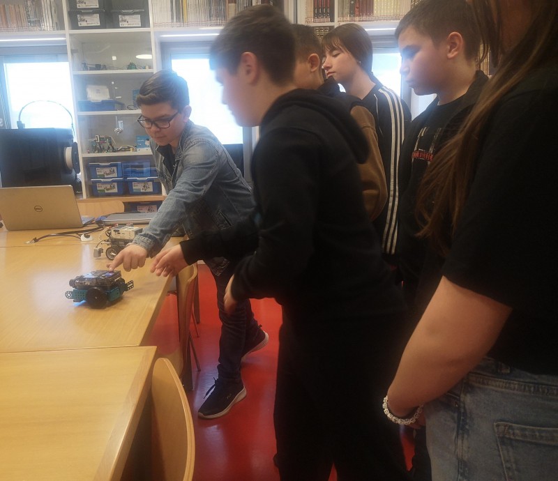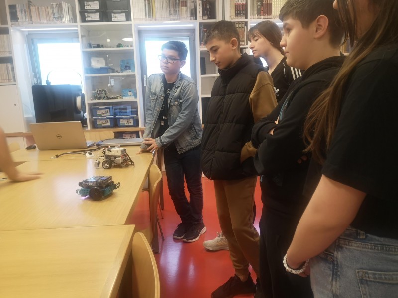 Αφού ξεναγήθηκαν και στα τρία επίπεδα και γνώρισαν τη συλλογή βιβλίων και παιχνιδιών, παρέμειναν στην αίθουσα πολυμέσων προκειμένου να δουν τον τεχνολογικό εξοπλισμό και τα πακέτα εκπαιδευτικής ρομποτικής. Τα παιδιά ενθουσιάστηκαν με τα ρομποτάκια και τις λειτουργίες τους, ενώ εντυπωσιάστηκαν από τον 3D σαρωτή και εκτυπωτή και τις εφαρμογές που έχουν σε όλα τα επιστημονικά πεδία. Επίσης, ενημερώθηκαν για το μικροσκόπιο και το τηλεσκόπιο που διαθέτει η Βιβλιοθήκη και υποσχέθηκαν να επιστρέψουν για μια βραδιά αστροπαρατήρησης στον αύλειο χώρο!