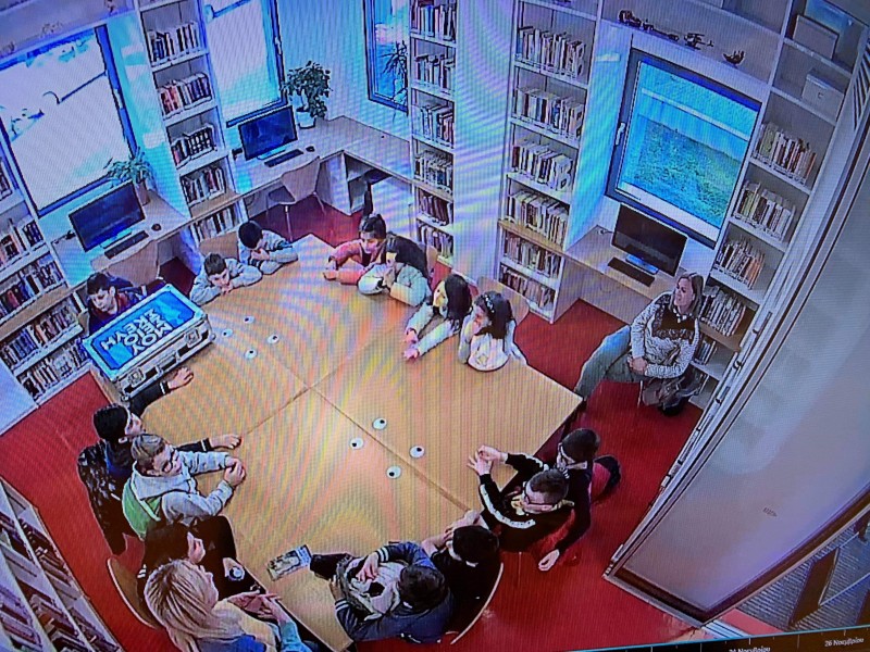 Οι μαθητές ξεναγήθηκαν σε όλους τους χώρους της Βιβλιοθήκης, έμαθαν για την οργάνωση του υλικού, έντυπου και ψηφιακού, και έπαιξαν εκπαιδευτικά παιχνίδια γνώσεων στον διαδραστικό πίνακα.