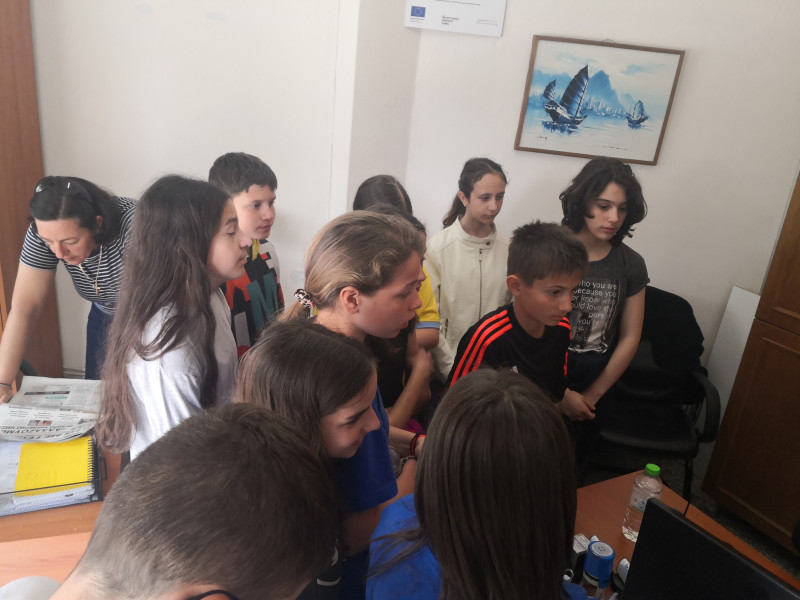 Η πρώτη υπηρεσία που πήγαμε ήταν το Δημοτολόγιο. Εκεί μας υποδέχτηκαν η κ. Ελένη και η κ. Δάφνη. Η κ. Δάφνη μας έδειξε πολλά βιβλία παλιά και πολύ μεγάλα. Μας απάντησε σε όλες τις απορίες μας, αναζητήσαμε ηλεκτρονικά πολλές πληροφορίες που μας αφορούσαν.