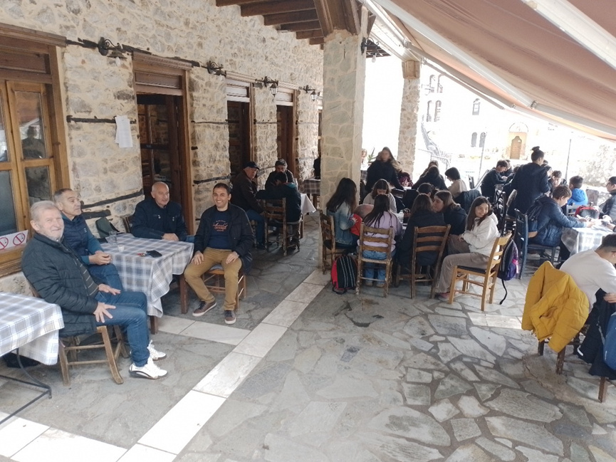 Εικόνα 8-Στο Παραδοσιακό καφενείο του χωριού για φιλοξενία που γέμισε με μαθητές.