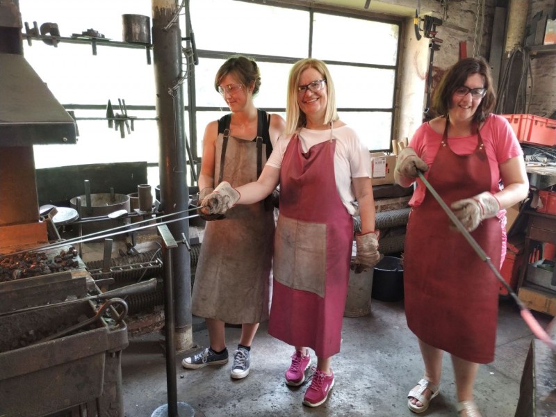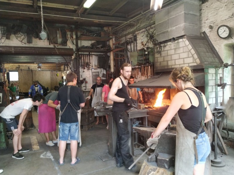 Στη συνέχεια μέσω ενός παραποτάμιου μονοπατιού, οδηγηθήκαμε σε ένα τοπικό παραδοσιακό σιδηρουργείο, όπου σφυρηλατήσαμε τις δικές μας δημιουργίες με την καθοδήγηση έμπειρων σιδηρουργών. Από το σημείο εκείνο, είχαμε την ευκαιρία να ατενίσουμε την πανύψηλη γέφυρα και τον εναέριο σιδηρόδρομο της περιοχής. Το απόγευμα της ίδιας μέρας επισκεφτήκαμε το γραφικό Grafrath, ένα από τα πέντε διαμερίσματα του Ζόλινγκεν.