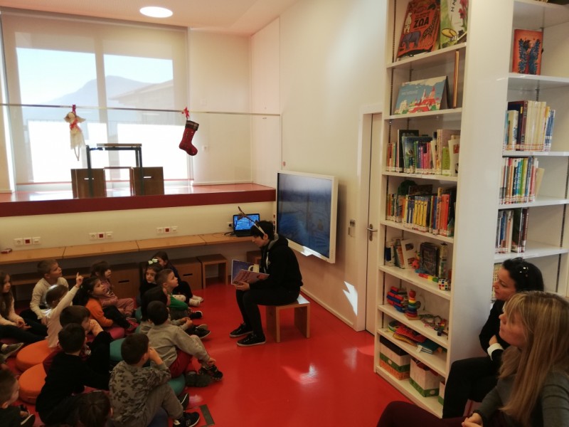 Αρχικά πραγματοποιήθηκε αφήγηση Χριστουγεννιάτικου παραμυθιού από τη Διευθύντρια και Βιβλιοθηκονόμο και στη συνέχεια τα παιδιά είχαν την ευκαιρία να παίξουν με τις εκπαιδευτικές εφαρμογές του Διαδραστικού πίνακα.