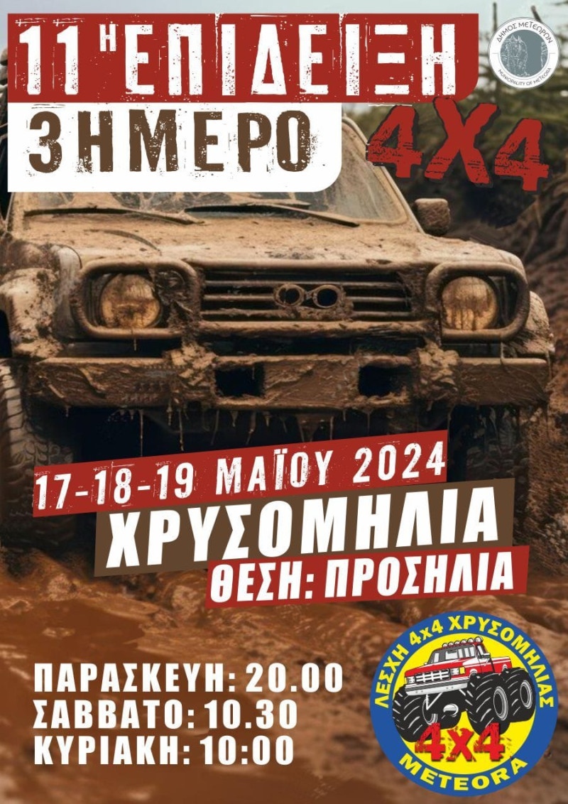 Το τριήμερο 17,18 και 19 Μαιου στην Χρυσομηλιά θα πραγματοποιηθεί η 11η επίδειξη 4×4 από την Λεσχη 4×4 της Χρυσομηλιάς.