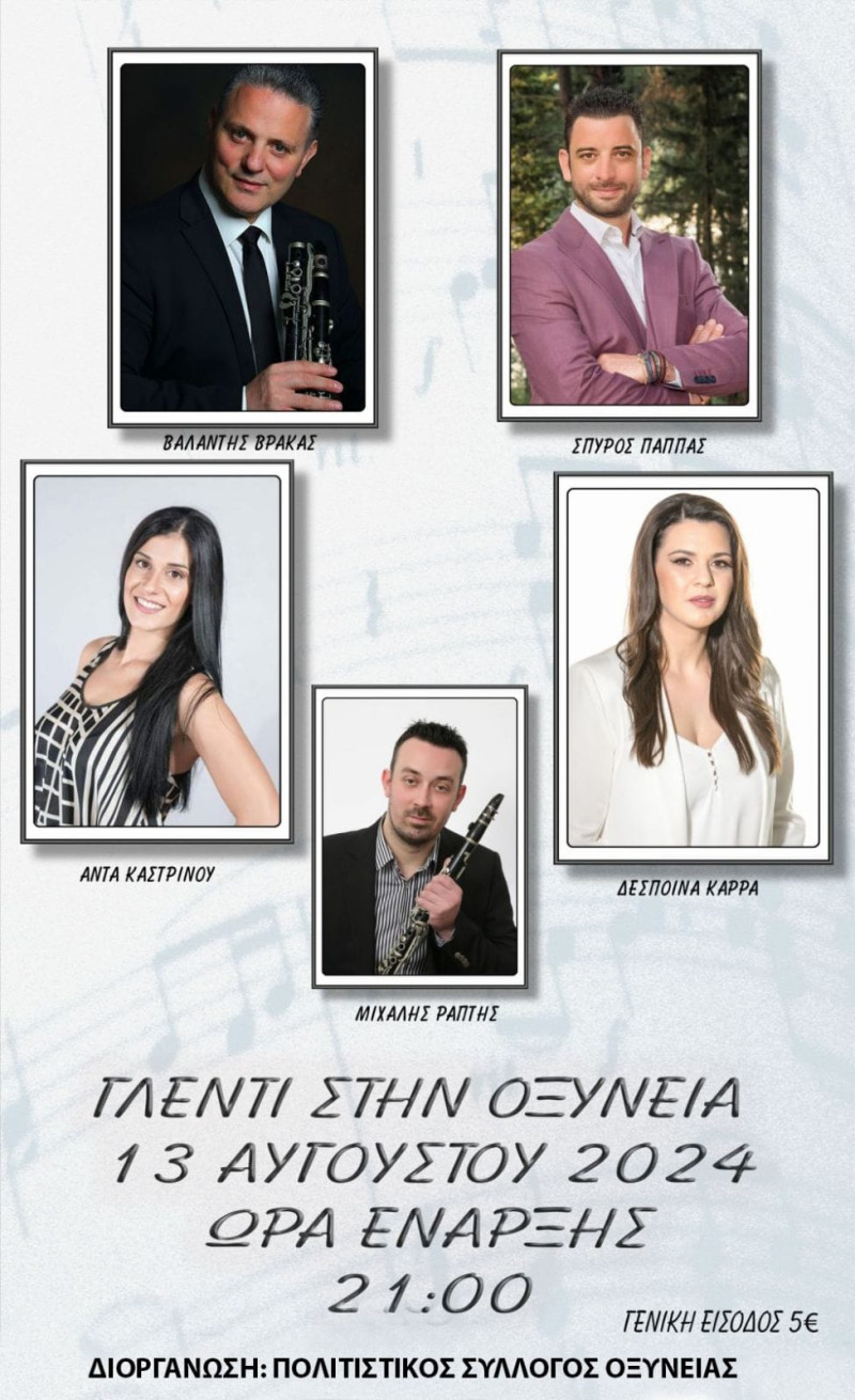 Με εξαιρετικούς μουσικούς και φέτος θα ξαφαντώσουμε 13 Αυγούστου, στην Οξύνεια!