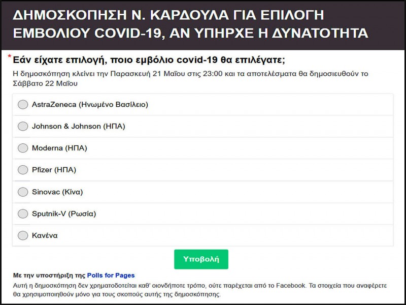 Έρευνα Ν. Καρδούλα: 55% των Ελλήνων επιλέγει 1 από τα 4 διαθέσιμα εμβόλια – 73% αν υπήρχαν και τα 6