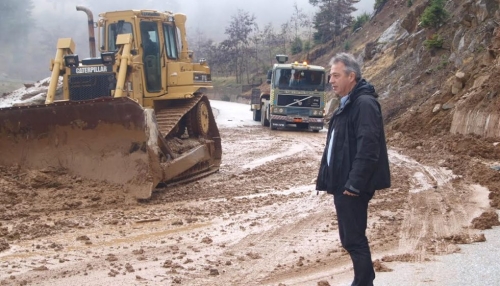Ειδικά συνεργεία προχωρούν στην αποκατάσταση του οδοστρώματος και στην κατασκευή τεχνικών για την προστασία του.