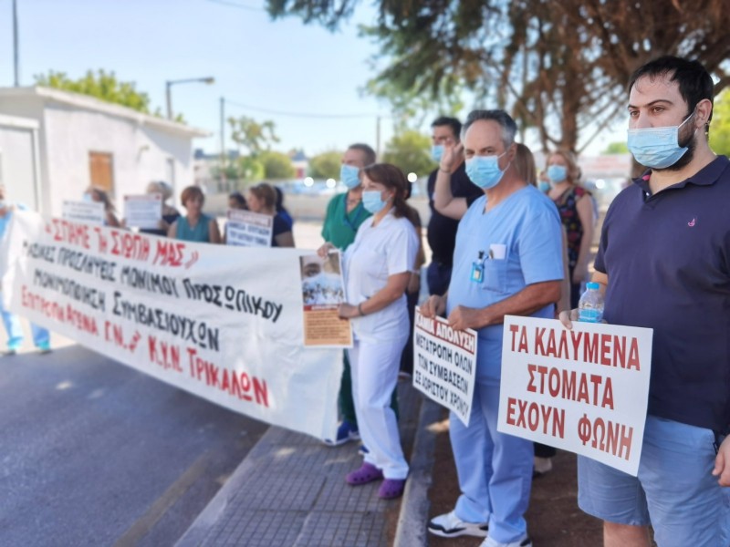 Εργαζόμενοι στο Γενικό Νοσοκομείο Τρικάλων : Νέα Διαμαρτυρία ενάντια στους εκβιασμούς της κυβέρνησης και στις αναστολές καθηκόντων