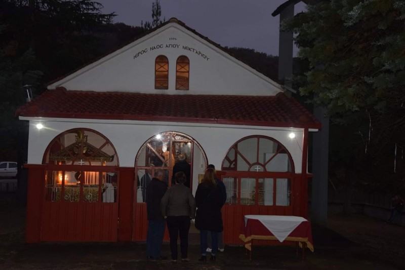 Το απόγευμα της Πέμπτης τελεστηκε στο πανηγυρικός Εσπερινός στο εξωκλήσι του Αγιου Νεκταρίου στην Οξυνεια.