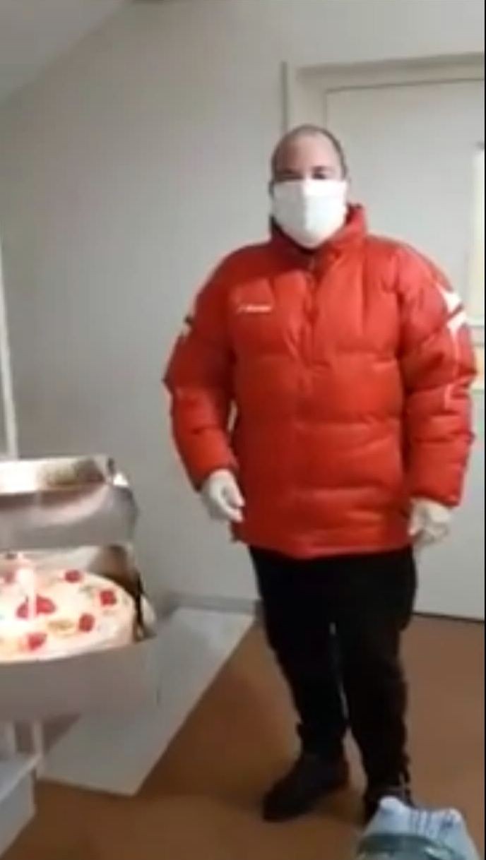 Ωστόσο από απόσταση και με την ανάλογη λήψη μέτρων έγινε και η ανάλογη έκπληξη με τούρτα και κεράκι από φίλους που έδωσαν μια χαρούμενη νότα στην ημέρα γενεθλίων του άξιου προέδρου που κατάφερε και έσβησε το κεράκι με την… μάσκα και από απόσταση!