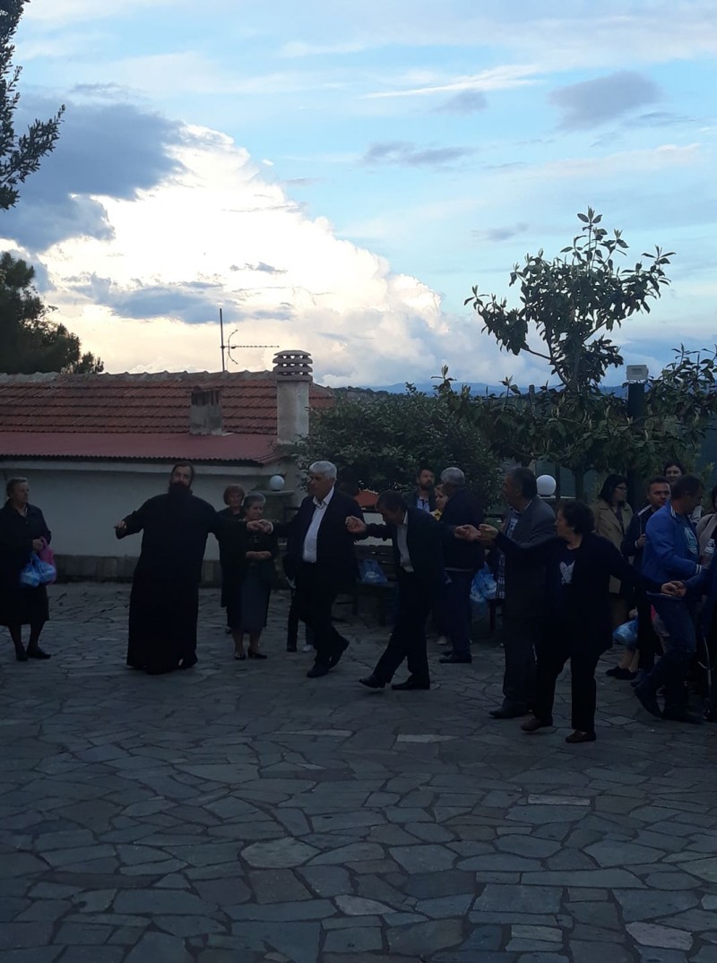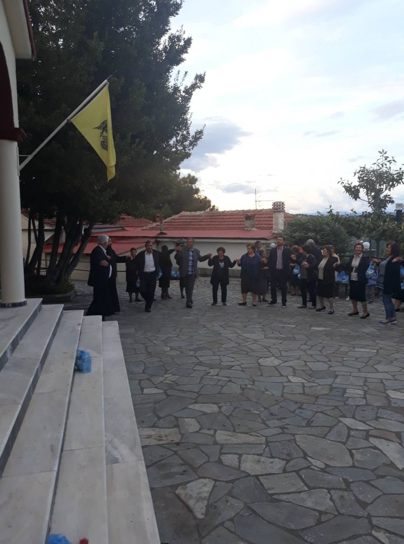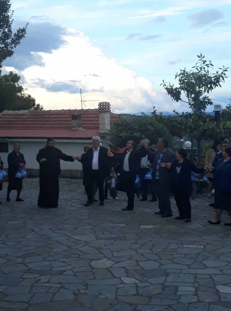 Μετά το πέρας της Θείας Λειτουργίας ο Υποψήφιος Δήμαρχος ήταν ένας από εκείνους που έσυραν τον παραδοσιακό χορό στον αύλειο χώρο.