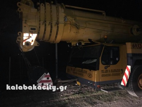 Τους γερανούς που θα σηκώσουν τα σημεία που έπεσαν από την γέφυρα της Διάβας στις  16 Ιανουάριου 2016