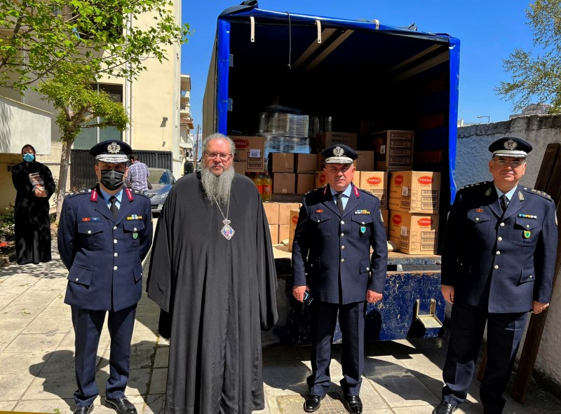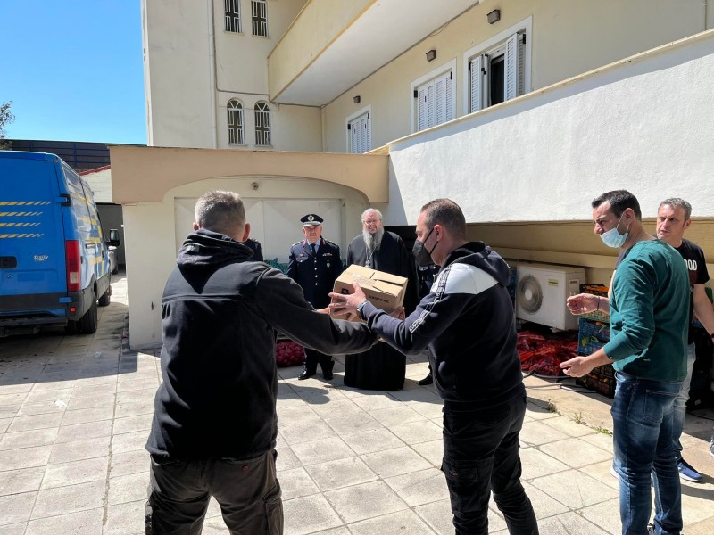 Ενόψει του φετινού εορτασμού του Πάσχα, από το προσωπικό της Γενικής Περιφερειακής Αστυνομικής Διεύθυνσης (ΓΕ.Π.Α.Δ.) Θεσσαλίας, συνεπικουρούμενο από φίλους του Σώματος της Ελληνικής Αστυνομίας, συγκεντρώθηκαν μεγάλες ποσότητες τροφίμων, τα οποία παραδόθηκαν στην Ιερά Μητρόπολη Λαρίσης και Τυρνάβου για την ενίσχυση των συσσιτίων της «Ο Επιούσιος». Επαΐων
