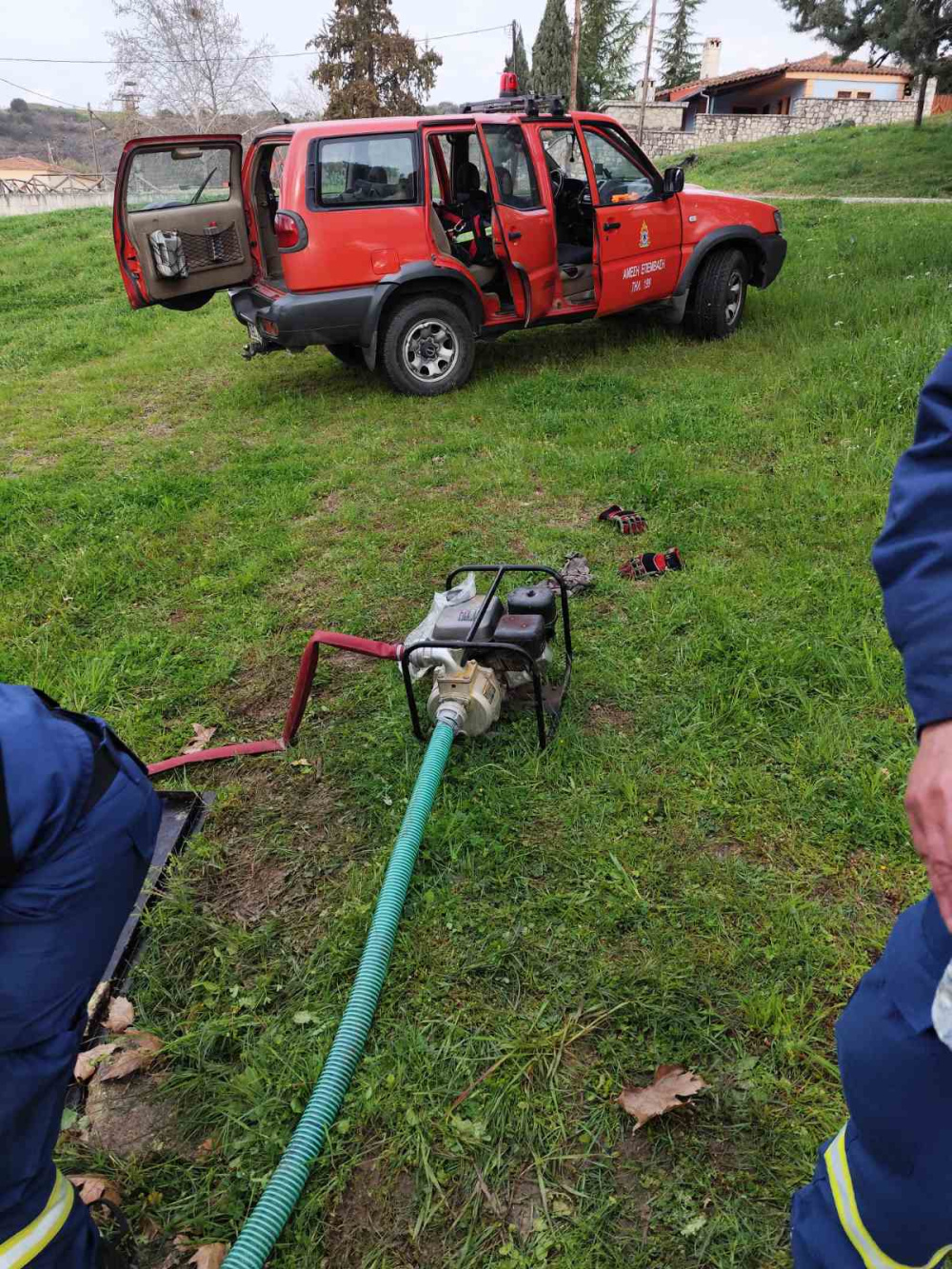 Από τις πρωινές ώρες στο σημείο βρέθηκε η Πυροσβεστική Υπηρεσία Καλαμπάκας, με την παρουσία και του διοικητή Βασίλειου Παπαγεωργίου, πάντα πρόθυμη να προσφέρει πολύτιμη βοήθεια με τα κατάλληλα μέσα για την αποστράγγιση του νερού.