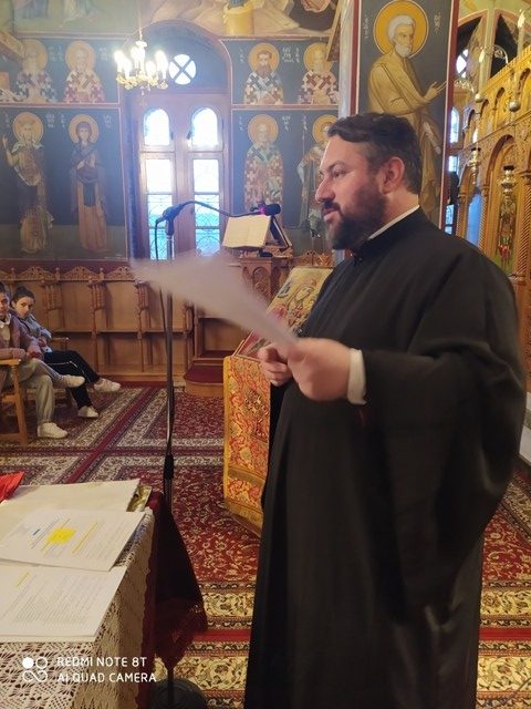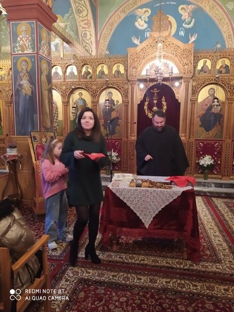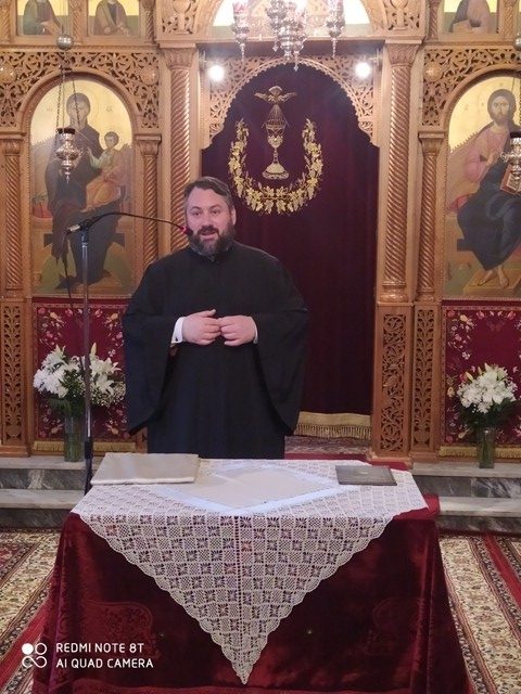 Ο εφημέριος του ναού μίλησε στα παιδιά και στους γονείς με αφορμή τα όσα διαδραματίζονται στις μέρες μας και δεν συνάδουν με το πνεύμα και τη ζωή της εκκλησίας και κάλεσε τους γονείς σε μία χριστιανική διαπαιδαγώγηση των παιδιών και σε μία πνευματική ζωή μέσα στη ζωή της εκκλησίας.