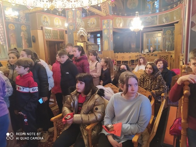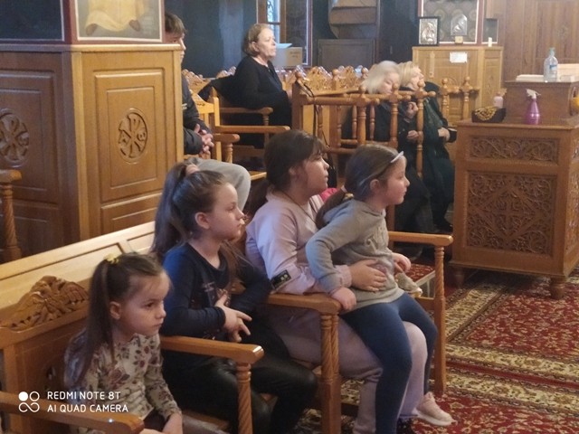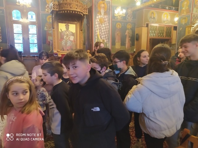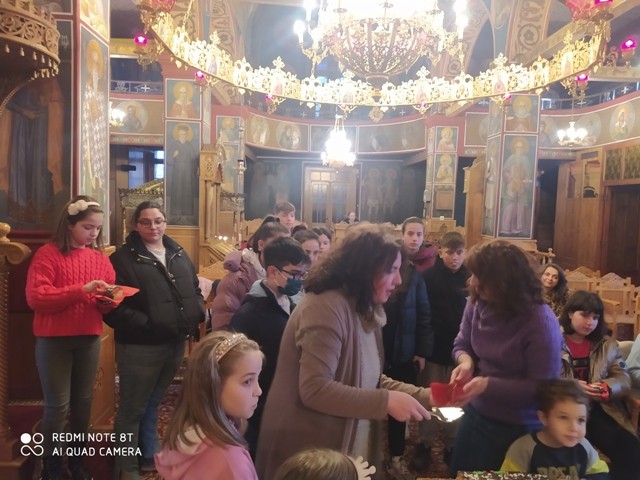 Ο εφημέριος του ναού μίλησε στα παιδιά και στους γονείς με αφορμή τα όσα διαδραματίζονται στις μέρες μας και δεν συνάδουν με το πνεύμα και τη ζωή της εκκλησίας και κάλεσε τους γονείς σε μία χριστιανική διαπαιδαγώγηση των παιδιών και σε μία πνευματική ζωή μέσα στη ζωή της εκκλησίας.
