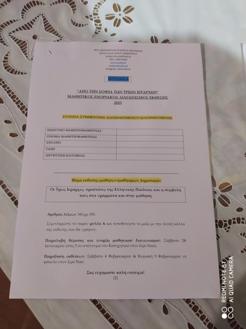 Κάθε εορτή των Τριών Ιεραρχών, η ενορία μας καθιέρωσε από πέρυσι να πραγματοποιείται ένας μαθητικός διαγωνισμός με τίτλο ”Από τη σοφία των Τριών Ιεραρχών”. Οι μαθητές του Δημοτικού και του Γυμνασίου – Λυκείου της Διάβας καλούνται να γράψουν έκθεση που σχετίζεται με τα πρόσωπα και το έργο των Τριών Ιεραρχών. Οι εκθέσεις βαθμολογούνται από την Φιλόλογο κα. Ευθυμία Παπαγεωργίου – Τσιαντή και στη συνέχεια ο μαθητής/τρια από το Δημοτικό και από το Γυμνάσιο – Λύκειο που έχει γράψει την καλύτερη έκθεση λαμβάνει από ένα δώρο. Φέτος θα δοθεί ως δώρο μία δωροκάρτα με την οποία οι δύο μαθητές/τριες θα μπορούν να αγοράσουν σχολικά είδη από το Βιβλιοχαρτοπωλείο Παπάντος στην Καλαμπάκα.