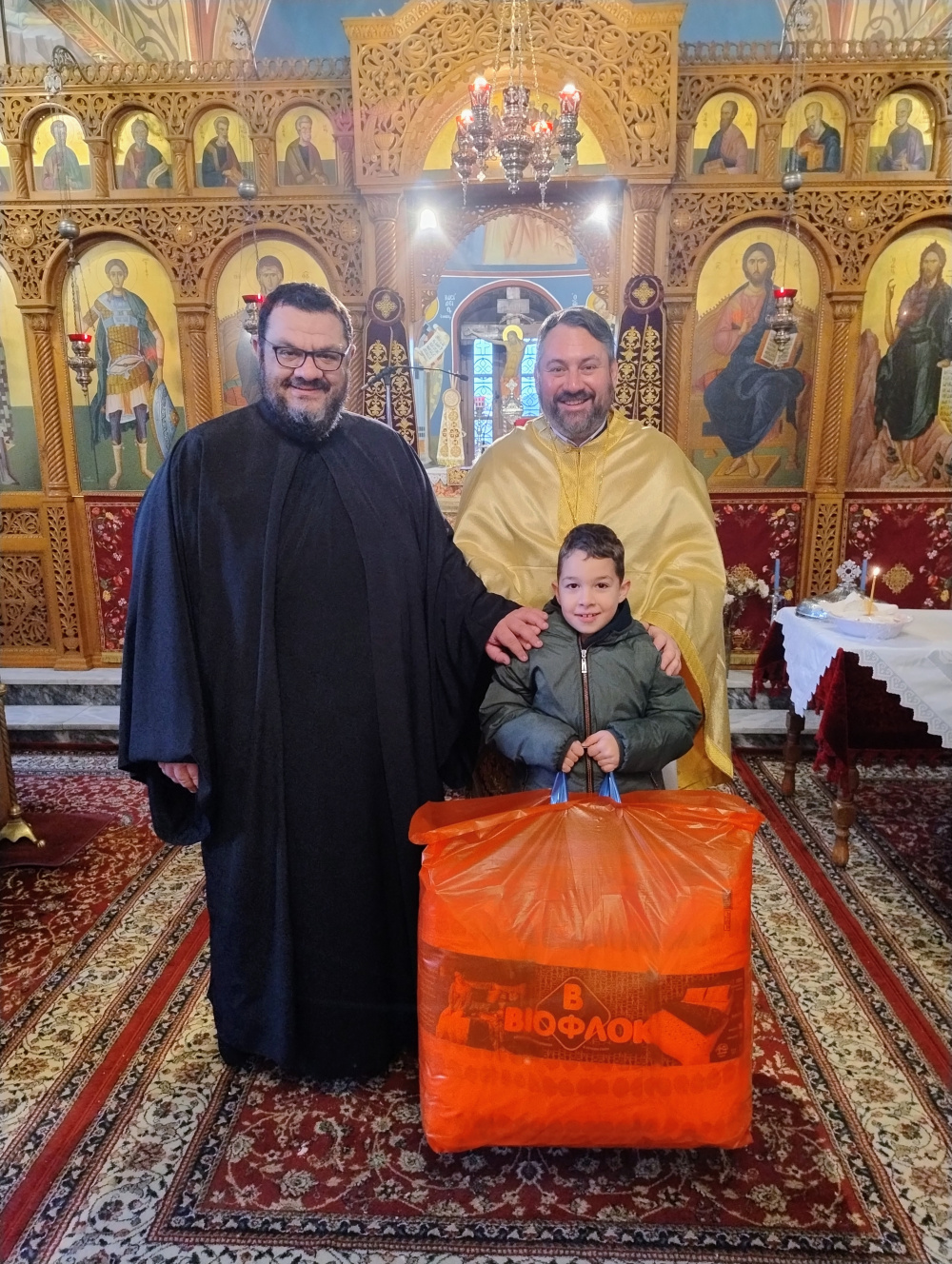 Το φλουρί, που αντιστοιχούσε σε ένα πάπλωμα από την ΒΙΟΦΛΟΚ, βρήκε ο μικρός Βασίλης Μπακόλας, γιος του εκδότη της εφημερίδας ‘’Τα Μετέωρα’’ Γιώργου Μπακόλα και της συνεργάτιδας της ενορίας μας και υπεύθυνης της Πολυζωείου Ενοριακής Βιβλιοθήκης Έφης Δούλη. Ο Βασιλάκης από την χαρά του έτρεχε εντός κι εκτός ναού που βρήκε το φλουρί! Αμέσως μετά όμως έπρεπε να βρει τρόπο να μεταφέρει στο σπίτι το τεράστιο δώρο!