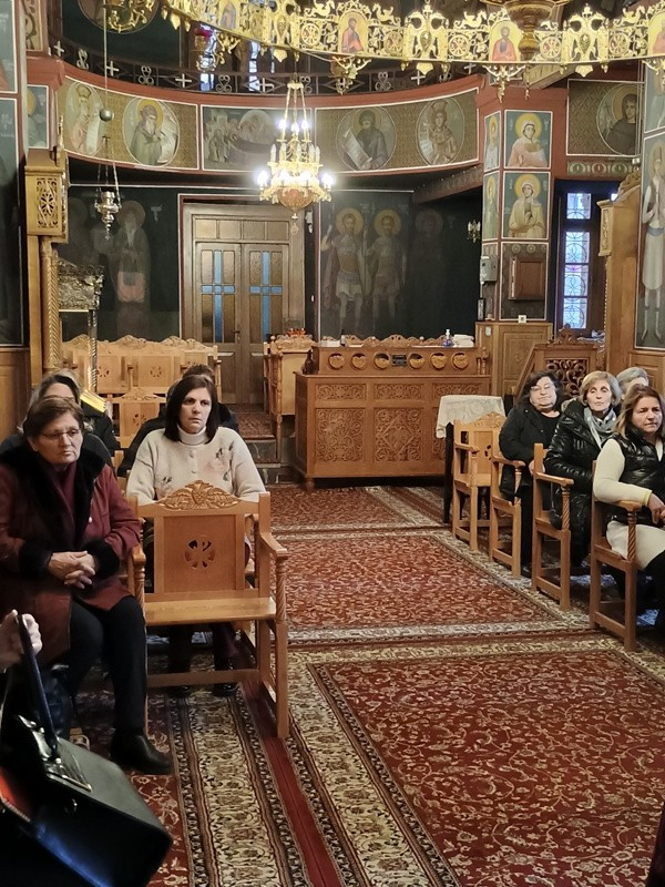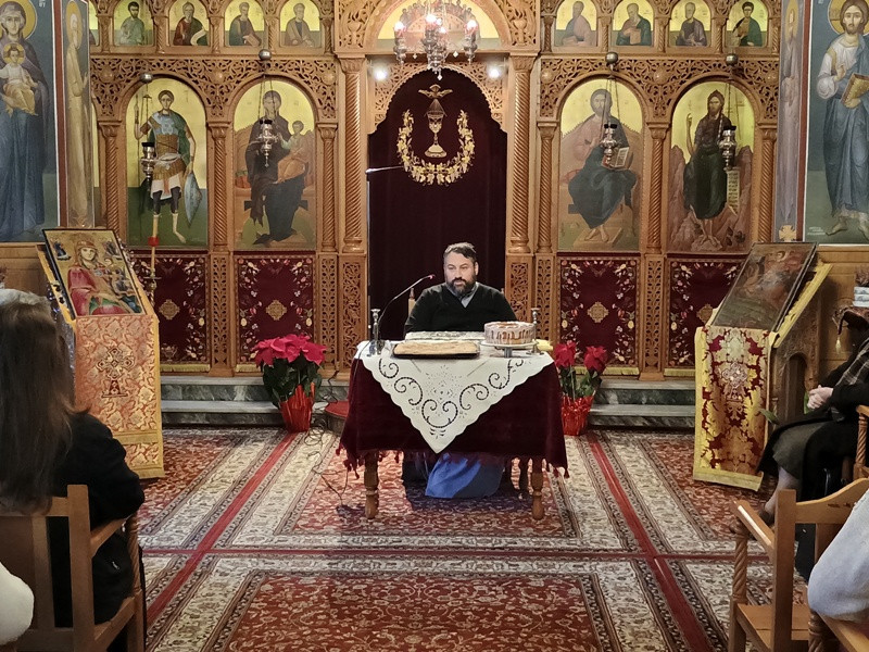 Ο εφημέριος του ναού στην πρώτη συνάντηση και στο πρώτο μάθημα του Κύκλου Μελέτης Αγίας Γραφής για το νέο έτος πήρε τον λόγο και μίλησε για το νόημα της εορτής των Χριστουγέννων, ξεδιπλώνοντας τις σκέψεις του σε δύο θεματικές ενότητες. Αναφέρθηκε στο τι είναι ο άνθρωπος σύμφωνα με τους Πατέρες της Εκκλησίας, βασισμένος ιδιαίτερα στην χριστιανική ανθρωπολογία του αγίου Γρηγορίου Νύσσης και στο μεγάλο μυστήριο της θείας ενανθρώπισης και σωτηρίας του πάσχοντος ανθρώπου.