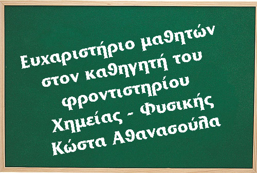 Ευχαριστήριο μαθητών προς τον καθηγητή του φροντιστηρίου φυσικής-χημείας Κώστα Αθανασούλα