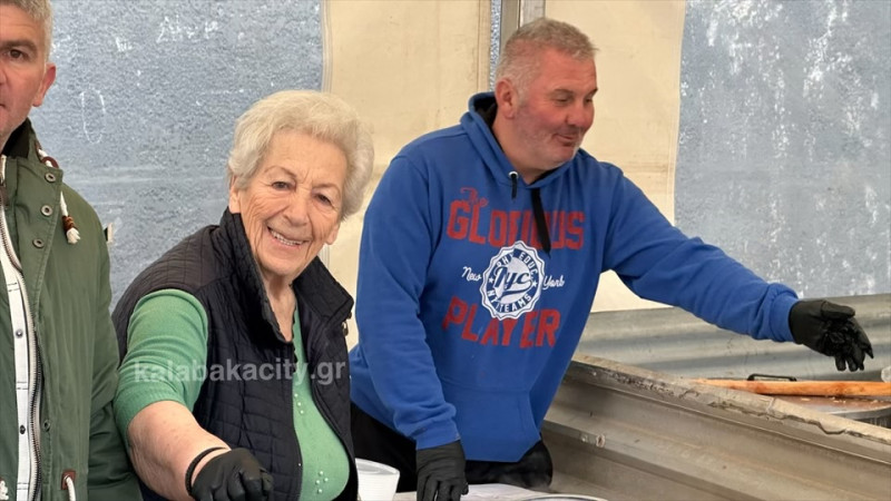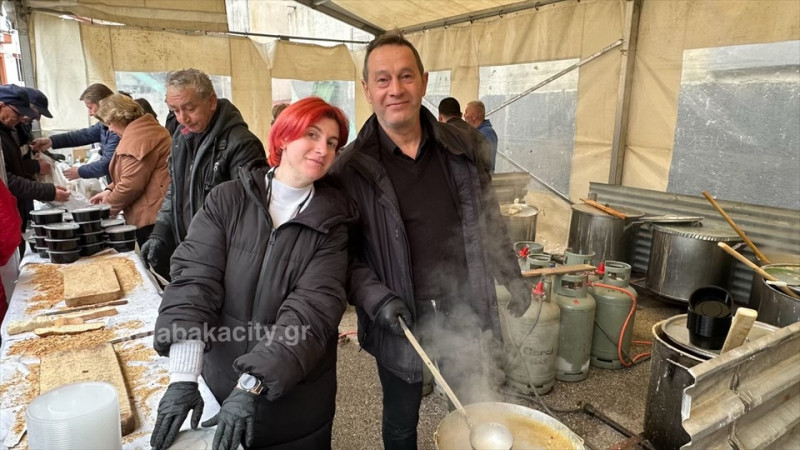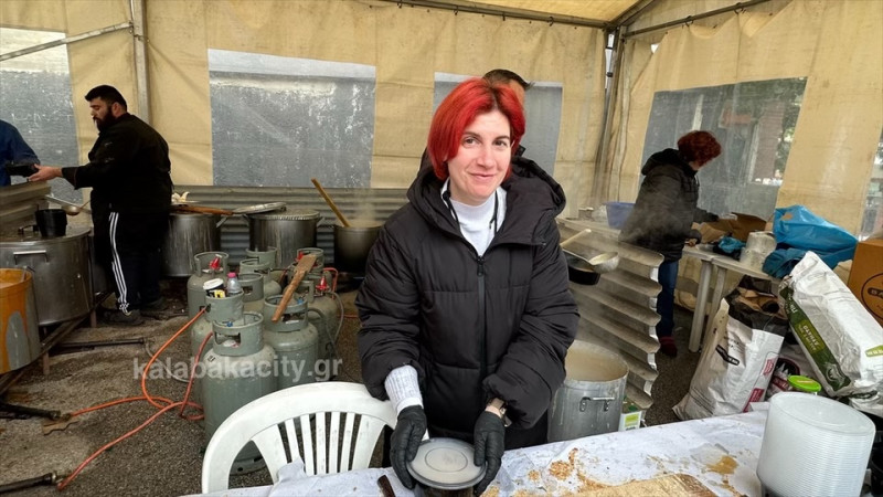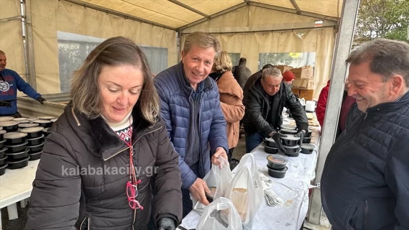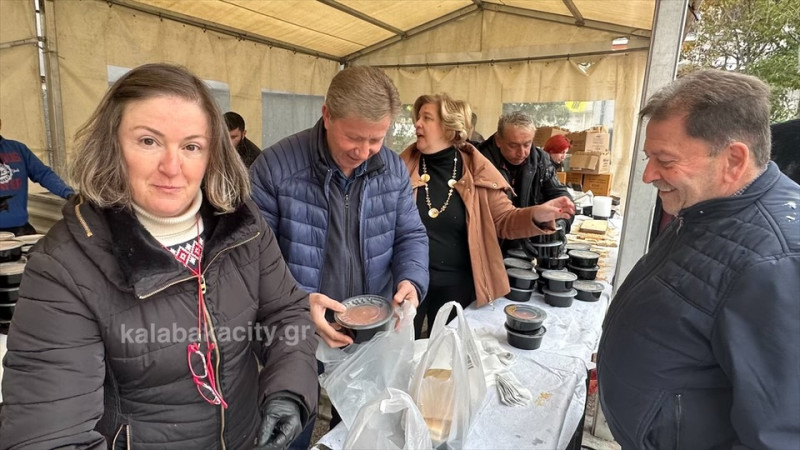 Κατοικοι και επισκέπτες της Καλαμπάκας απολαμβάνουν την νόστιμη φασολάδα που έχει δημιουργήσει και φέτος ο δήμος Μετεώρων χωρίς ο άστατος καιρός να είναι ιδιαίτερο εμπόδιο !