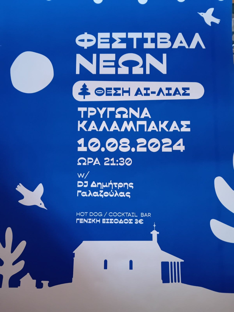 Φεστιβάλ Νέων στην Τρυγώνα το Σάββατο 10/8 στην θέση Αι Λιάς με τον dj Δημήτρη Γαλαζούλα.