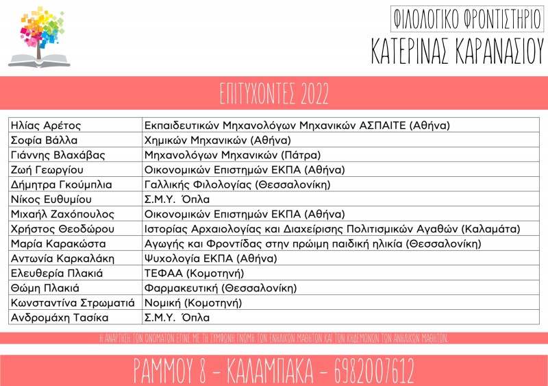 Μια σχολική χρονιά με πολλές δυσκολίες και ιδιαιτερότητες ολοκληρώθηκε με την ανακοίνωση των βάσεων εισαγωγής στα πανεπιστήμια. Θερμά συγχαρητήρια σε όλους τους μαθητές μας που καταφέρατε την εισαγωγή σας στις σχολές της προτίμησής σας.