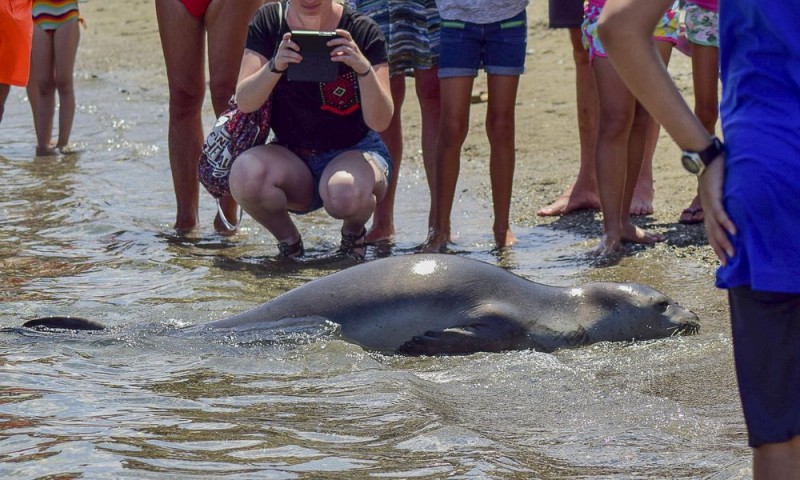 Η Λιμενική Αρχή Σκοπέλου ενημέρωνε συχνά τους παρευρισκόμενους, για τους οποίους ήταν ασυνήθιστη και ανέλπιστη μια τέτοια παρουσία, να κρατούν ασφαλή απόσταση, να μην βρέχουν και να μην ταΐζουν το ζώο.