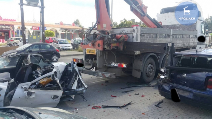 Φορτηγό – γερανός «θέρισε» 9 σταθμευμένα οχήματα στη Ρόδο