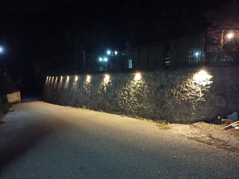 Σειρά είχε να φωταγωγηθεί και να αναδειχθεί ο πέτρινος τοίχος της κεντρικής πλατείας του χωριού μας.