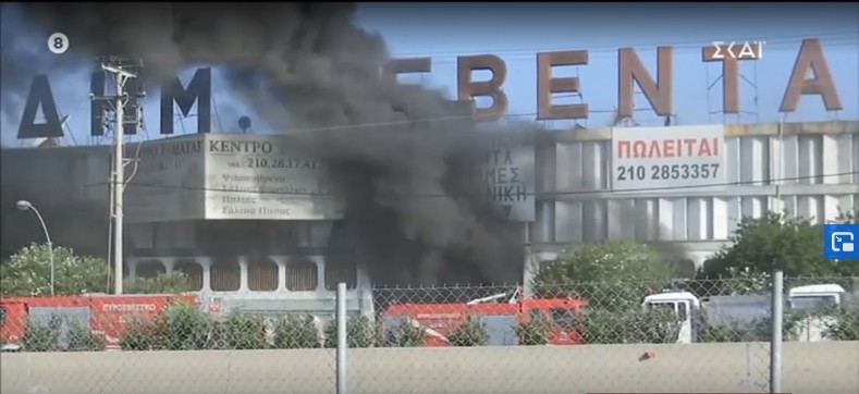 Η πυρκαγιά έχει πάρει έκταση και έχει επεκταθεί σε όλο το κτίριο, ενώ λόγω των πλαστικών που καίγονται έχει καλυφθεί με πυκνό μαύρο καπνό ο ουρανός της Αττικής.