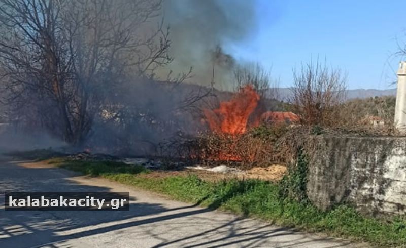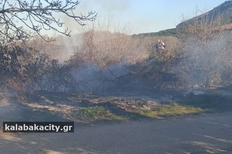 Φωτιά ξέσπασε σήμερα σε οικόπεδο στην Διάβα Καλαμπάκας και συγκεκριμένα σε ξερά χόρτα και θάμνους.