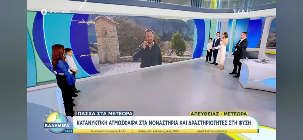 Ο Αντιδήμαρχος Τουρισμού του Δήμου Μετεώρων, Φώτης Καραθανάσης, μίλησε το πρωί του Σαββάτου στην εκπομπή «Καλημέρα» του ΣΚΑΪ και στη δημοσιογράφο Φαίη Μαυραγάνη, αναφερόμενος στις δράσεις και τις εκδηλώσεις που προγραμματίζονται για την περίοδο του Πάσχα.