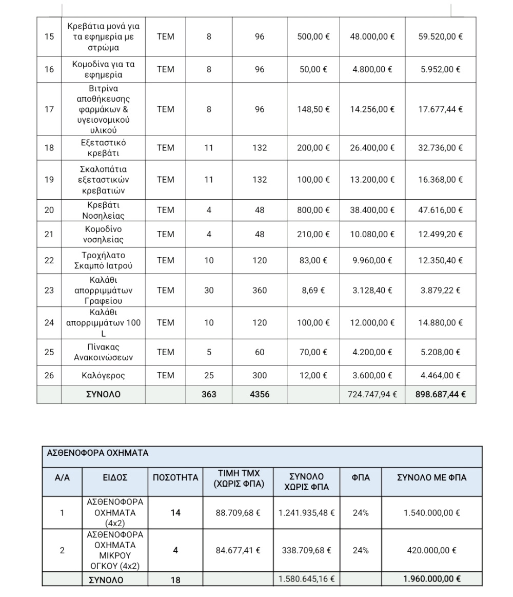 Αναβαθμίζονται τα Κέντρα Υγείας της Θεσσαλίας, με ιατροτεχνολογικό εξοπλισμό ύψους 1.293.800,00 €, ξενοδοχειακό εξοπλισμό ύψους 898.687,44 € και με την προμήθεια δεκαοκτώ (18) ασθενοφόρων ύψους 1.960.000,00 €, για την κάλυψη αναγκών των δομών της Πρωτοβάθμιας Φροντίδας Υγείας της Θεσσαλίας μέσω του Προγράμματος «ΘΕΣΣΑΛΙΑ 2021-2027».