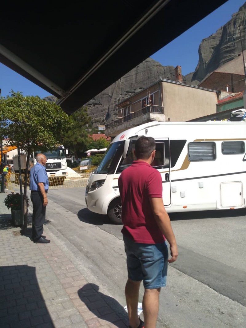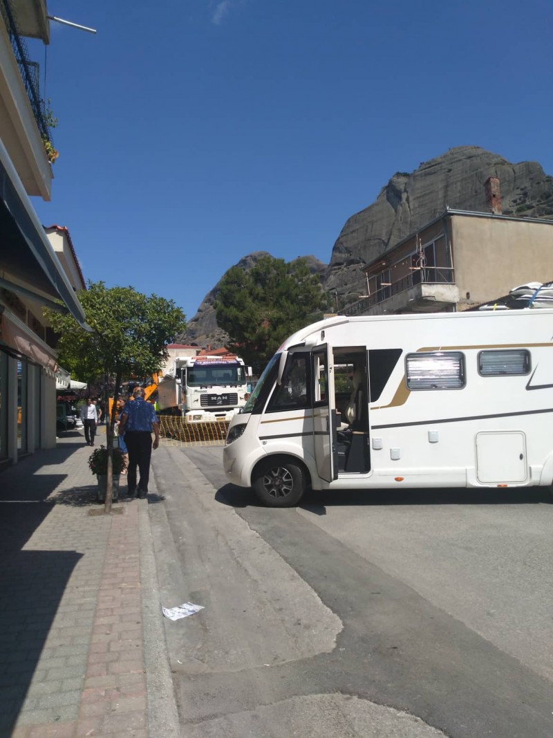 Ο τουρίστας με το τροχόσπιτό του μπήκε στην οδό Τρικάλων όπου σε τμήμα της πραγματοποιούνταν εργασίες.