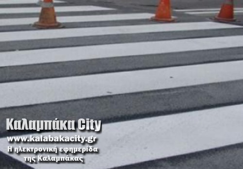 Φρεσκάρονται οι διαγραμμίσεις πεζών στους δρόμους της Καλαμπάκας
