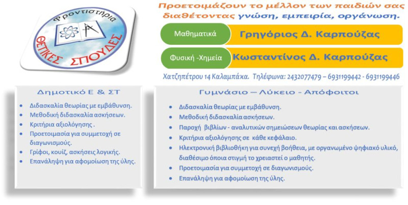 Θερμά συγχαρητήρια σε όλους τους μαθητές του Φροντιστηρίου μας που εισάγονται στη Σχολή της επιλογής τους!