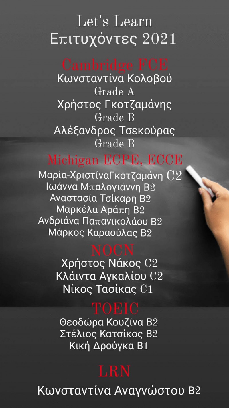 Φροντιστήριο Αγγλικών Let’s Learn – Επιτυχόντες 2021 – Έναρξη εγγραφών