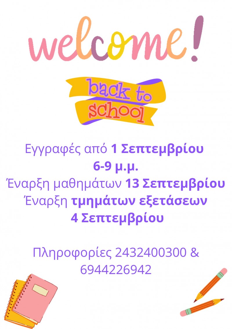 Από το Φροντιστήριο Αγγλικών Welcome to Knowledge στην Καλαμπάκα ανακοινώνεται πως οι εγγραφές ξεκινούν την 1η Σεπτεμβρίου 2023 και ώρες 6 – 9 μ.μ.