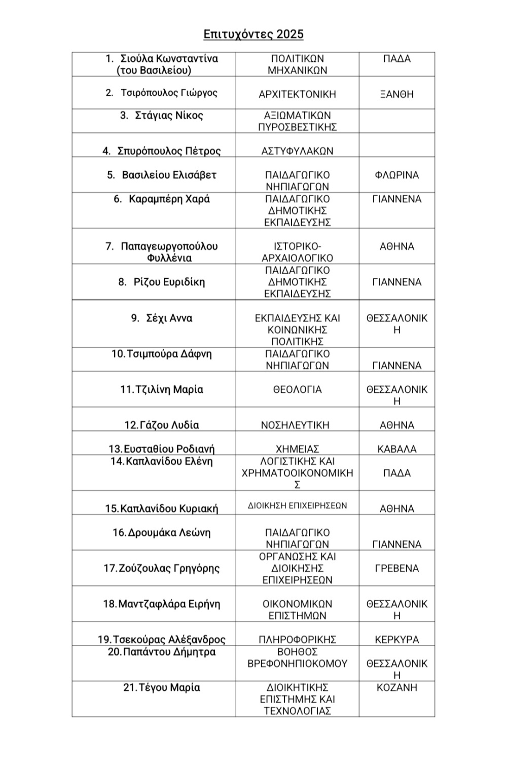 - Τμήματα αποφοίτων