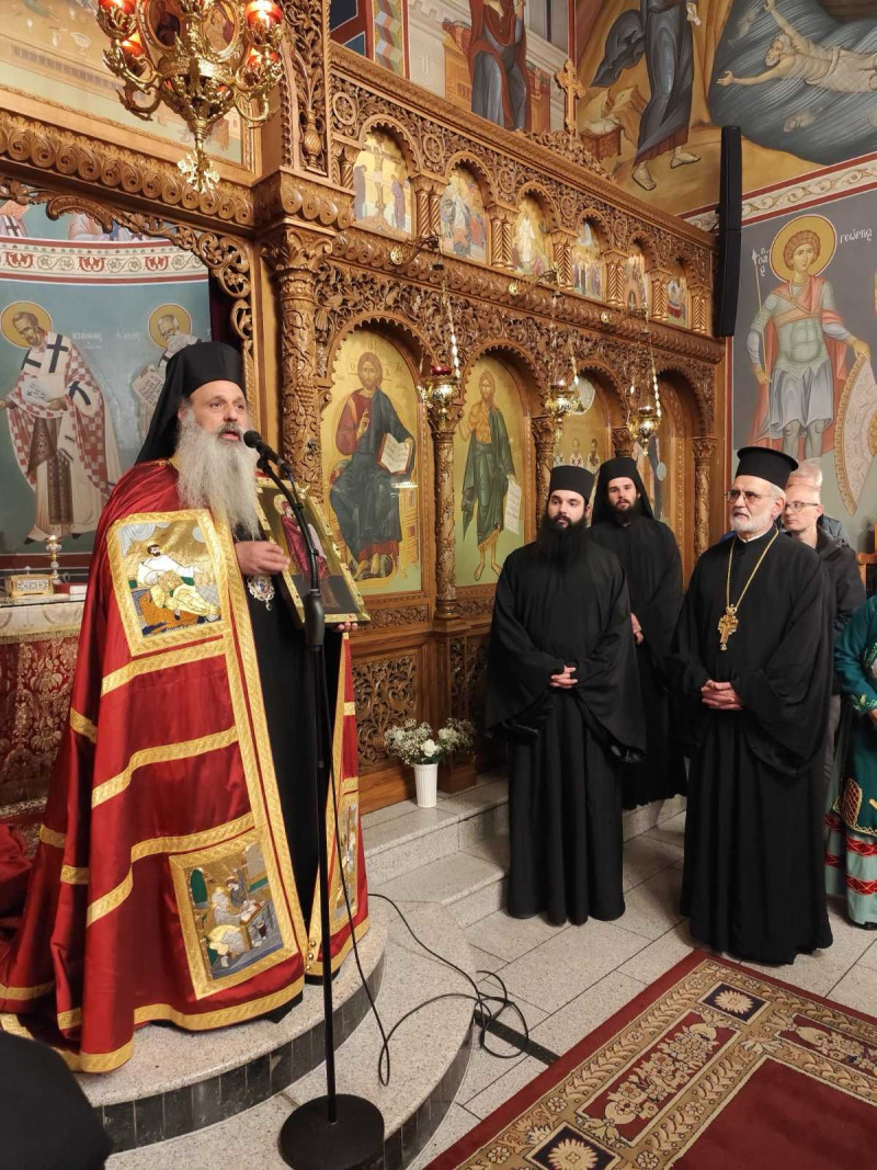 Το απόγευμα της Παρασκευής 14/3, στον Ιερό Ναό Αγίου Αποστόλου Παύλου στην Νυρεμβέργη πραγματοποιήθηκε η υποδοχή της άφθαρτης αριστερής χειρός του Αγίου Ιωάννη του Χρυσοστόμου υπό του Σεβασμιωτάτου Μητροπολίτη Σταγών και Μετεώρων κ. Θεοκλήτου, το οποίο κόμισε ο Πανοσιολογιώτατος Αρχιμανδρίτης Βαρλαάμ της Ιεράς Μονής Βαρλαάμ Μετεώρων. Ακολούθως τελέστηκε η Ακολουθία της Β’ Στάσεως των Χαιρετισμών χοροστατούντος του Σεπτού μας Ποιμενάρχου κ. Θεοκλήτου.
