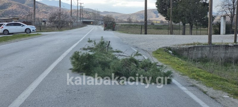 Με κλαδιά γέμισε ο δρόμος σε διάφορα σημεία, οταν αυτα αρχισαν να πέφτουν απο αυτοκίνητο.