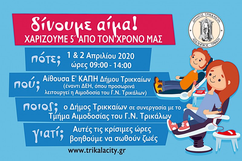 Για την αιμοδοσία, ήδη υπάρχει κινητοποίηση και από συλλόγους και σωματεία αθλητισμού και πολιτισμού, μετά τη σχετική επιστολή ευαισθητοποίησης που έστειλε ο Δήμος Τρικκαίων.