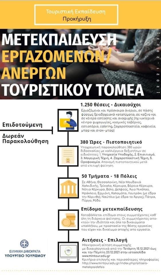 Οι αιτήσεις υποβάλλονται ηλεκτρονικά σε ειδική εφαρμογή στο mintour.edu.gr από 15/12/2021 έως και 23/12/2021.