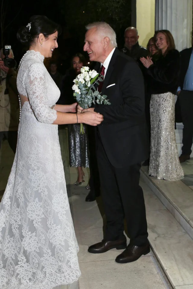 Το μυστήριο έγινε σε πολύ στενό οικογενειακό και φιλικό κύκλο. Κουμπάροι του ζευγαριού είναι οι φίλοι τους Γιώργος Μακρόπουλος και η σύζυγός του Άννα.