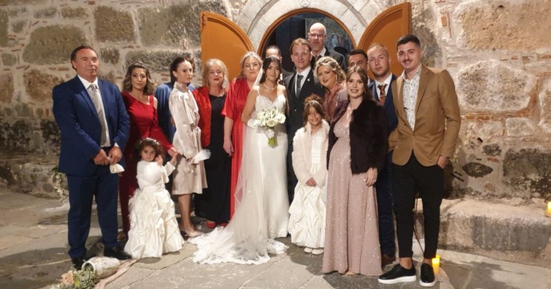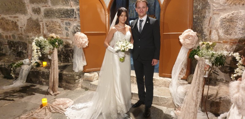 Η γαμήλια τελετή με κουμπάρο τον Ζήση Παπούλια έγινε παρουσία συγγενών και φίλων με τις καλύτερες ευχές στους νεόνυμφους.